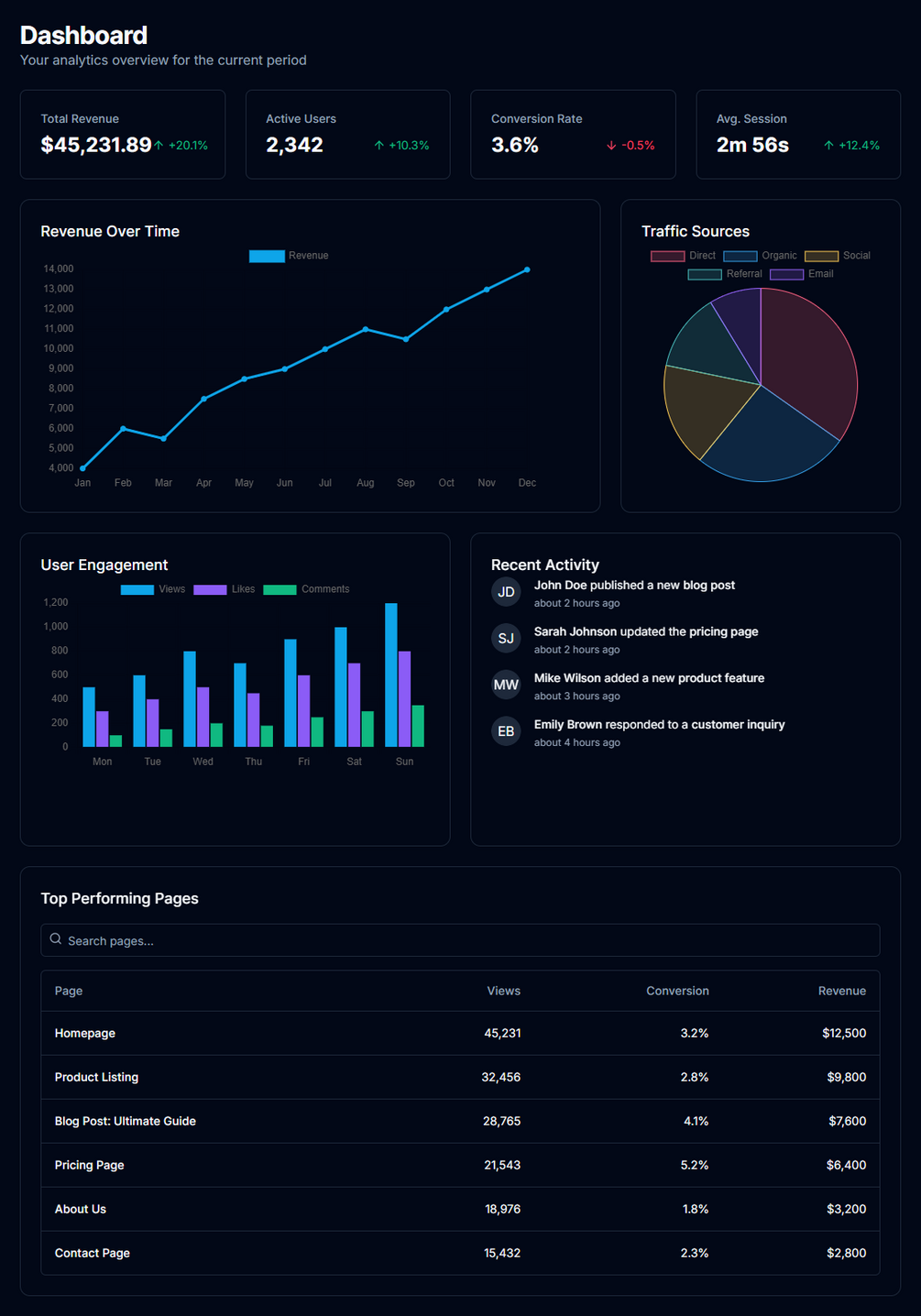 - Fully responsive + dark-mode enabled