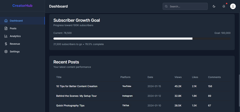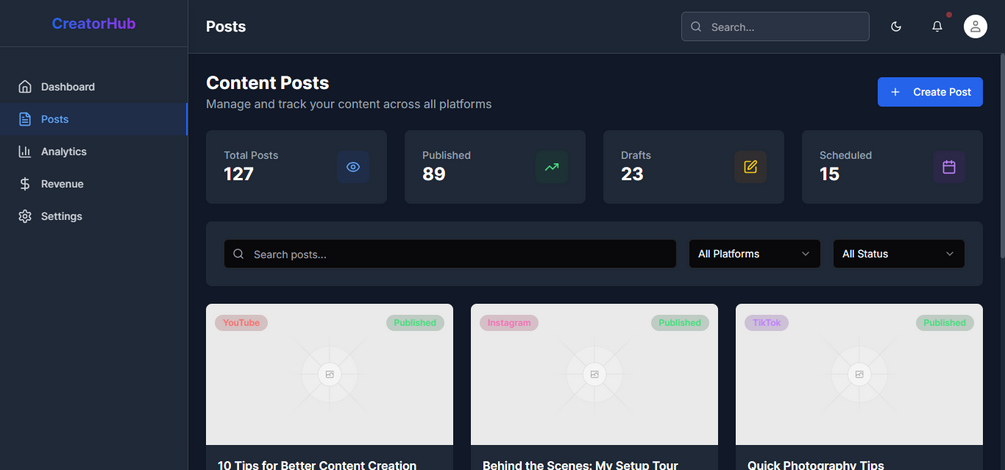 CreatorHub Preview URL : https://creator-hub-dashb.vercel.app/