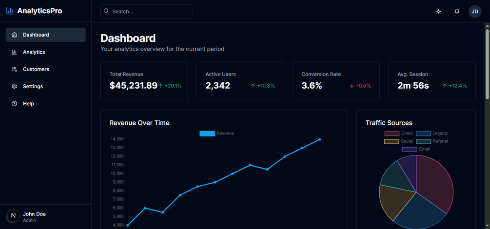AnalyticsPro Preview URL : https://v0-vercel-ai-dashboard-kappa.vercel.app/